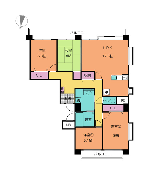 | 専有面積 | 壁芯 104.85㎡ | バルコニー | 25.20㎡ |