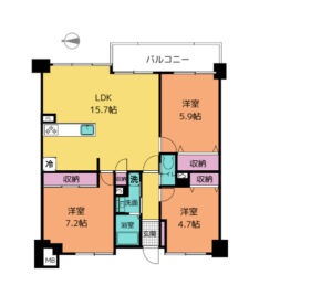 | 専有面積 | 壁芯 71.61㎡ | バルコニー | 有 10.47㎡ |
